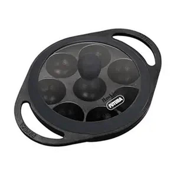 The Hawkins Futura Cast Iron Appe Pan is a versatile kitchen essential, crafting a variety of snacks from traditional appe to Aloo Bonda, Paneer kebabs, and more, all in minutes. Enjoy healthier, tastier, and crispier meals without the need for artificial coatings. Its ability to retain heat ensures even cooking and delicious results every time. As this frying pan is rugged, you can confidently use metal ladles without worrying about damaging its surface. This pan comes pre-seasoned with vegetable oil, ensuring long-lasting durability and effortless maintenance. The heat-proof glass lid features a food-grade silicone rim for a secure fit and added convenience. The high-dome glass lid accommodates food expansion without sticking. Experience years of faithful service with this tough pan.
