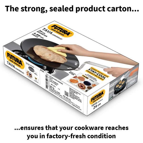 Premium Quality Hard Anodised Tawa for Everyday Use Cook delicious parathas in an efficient manner using the Hawkins Futura hard anodised tawa. With a solid build quality and a sturdy metal handle, this tawa has the perfect concave design to help you cook lip-smacking parathas, rotis, dosas and much more. Compatible with gas stovetops, this tawa is ideal for everyday use in the kitchen. The concave bottom and hard anodised material enables faster and even cooking which results in crispier and tastier food. Made from Robust Material, Built to Last Build using hard anodised aluminium, the Hawkins Futura tawa is built to last for a long time and can withstand the rigours of daily use. The durable material and scratch resistant surface also enables the use of metal ladles and spoons, providing further ease of use. It features a sturdy handle that stays cool even while cooking, making it easy to handle. Available in a unique black colour, this tawa can retain its looks for years to come. Its elegant design helps in improving the overall look and feel of your kitchen décor.