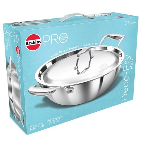Hawkins Pro Triply Stainless Steel Deep-Fry Pan (Kadhai) is engineered for culinary excellence, achieving professional results every time. Featuring a robust tri-ply stainless steel construction, this pan ensures that food cooks evenly without sticking or burning, even with minimal oil, guaranteeing optimal cooking performance. Designed for your comfort and safety, the stay-cool handles allow for easy and secure handling, even when the pan is hot. Whether you're using gas, induction, or the oven, this deep-fry pan adapts effortlessly to various cooking methods, offering versatility and convenience in the kitchen. The stainless steel rivets ensure that the pan remains sturdy and stable, preventing any concerns about loosening or durability. The pan is dishwasher safe, making maintenance a breeze and freeing up more time for culinary creativity. Complete with an elegant, food-grade, extra-thick lid equipped with a stay-cool handle, this deep-fry pan combines functionality with style.