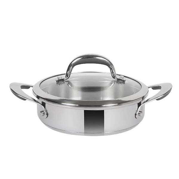 - 100% Nickel Free Thick Stainless Steel Sauteuse Pan with Glass Lid; Metal utensil safe; Oven and Dishwasher safe
