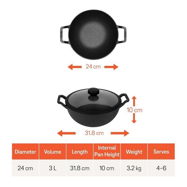 - No hot spots: Cooks evenly as the thick Aluminium core distributes heat uniformly