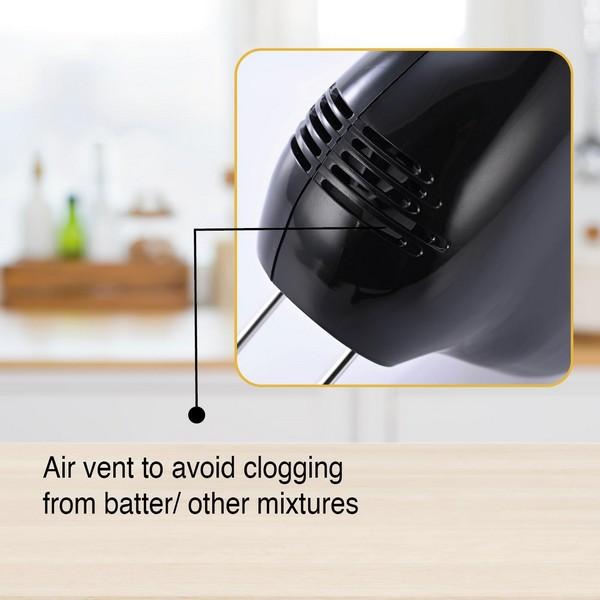 - Includes: Includes: Hand mixer, Stainless steel dough hooks and Stainless steel strip beaters