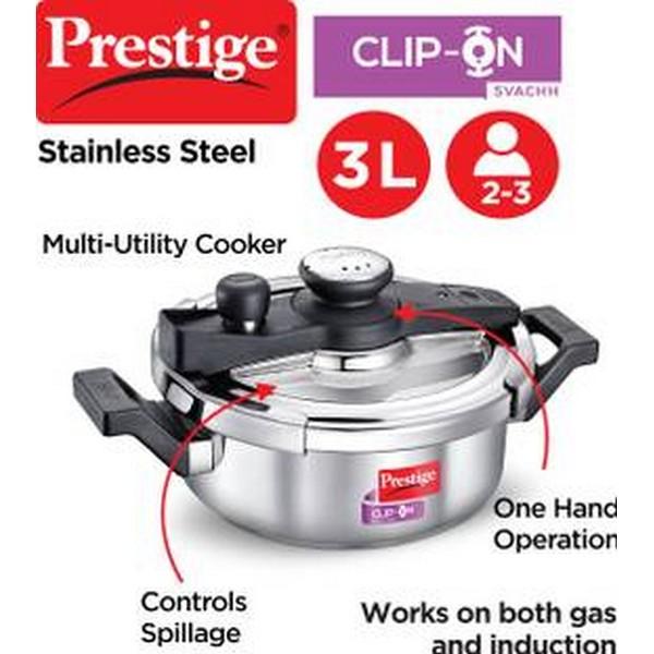 Use the unique glass lid to saute, steam, fry, boil, cook and even serve. The Prestige Clip-on Mini Svachh Pressure cooker range is modular in design, which means you can use the same lid on all utensils in the range.