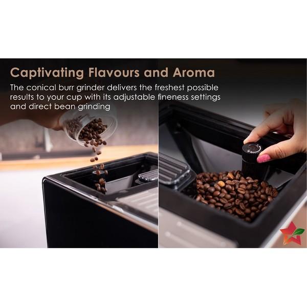 Easy Operations: Just choose your favourite coffee. The machine will automatically grind the beans, extract espresso shot, put the milk from the container, froth it appropriately and add it to the espresso shot to give you perfect coffee every time.