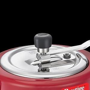 GASKET RELEASE SYSTEM When there is excess built up of pressure within the pressure cooker, the Gasket bulges out through the slot present towards aside in the lid of the pressure cooker. The pressure gets released out through the opening on the lid.