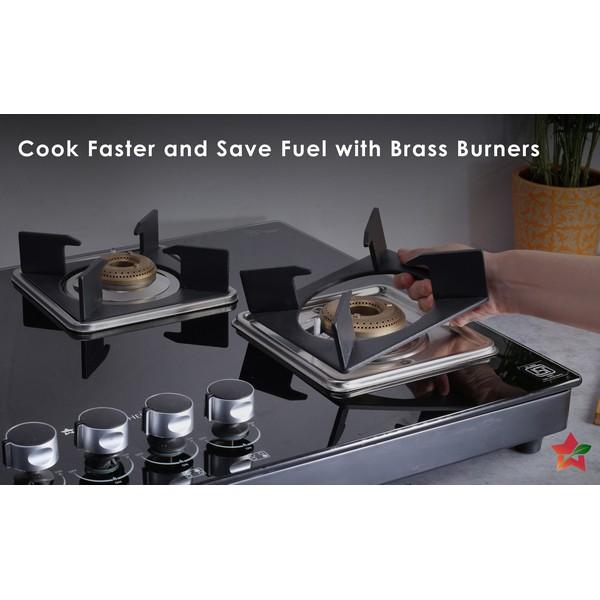 High efficiency forged brass burners, toughened glass and ergonomically designed knobs make it the perfect choice for all types of kitchens
